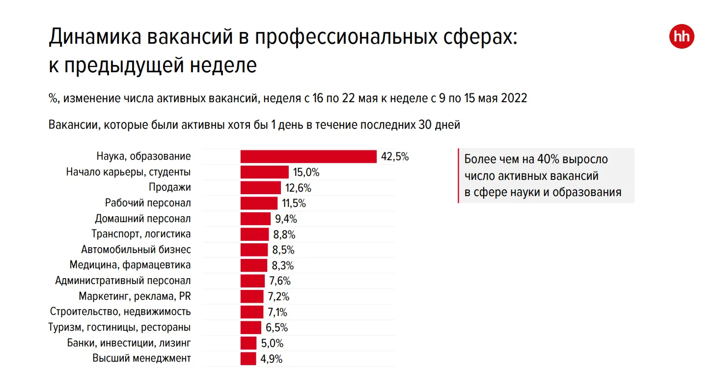 В сфере науки и образования число объявлений о поиске сотрудников увеличилось на 40%.