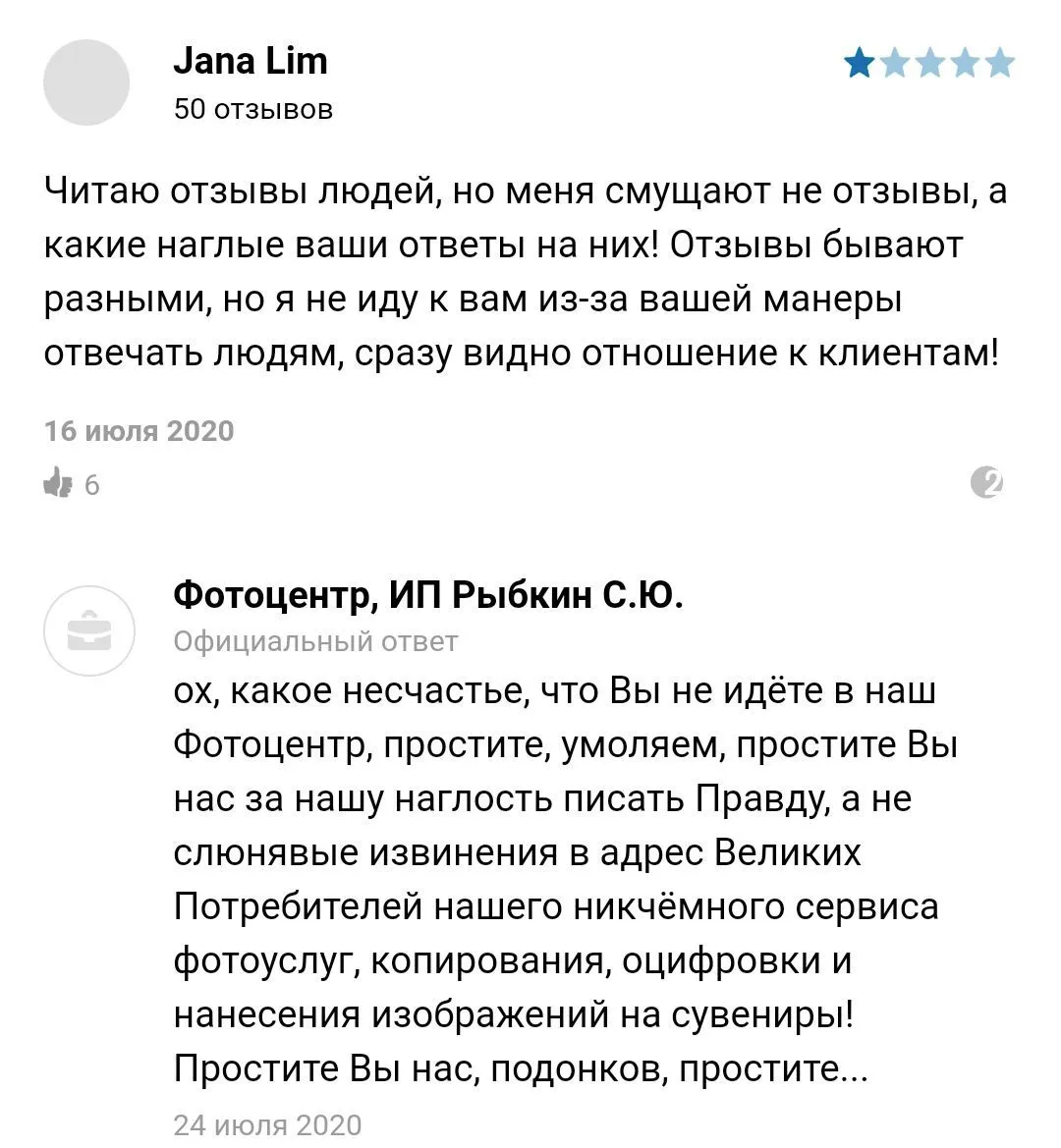 Однако нельзя сказать, что негатив совсем уж под запретом: иногда он может быть и частью стратегии продвижения бренда и использоваться для привлечения внимания к компании. Например, этот фотограф на все негативные отзывы отвечает в одном ключе — и поскольку не делает никаких выводов, возможно, это просто его стиль общения.